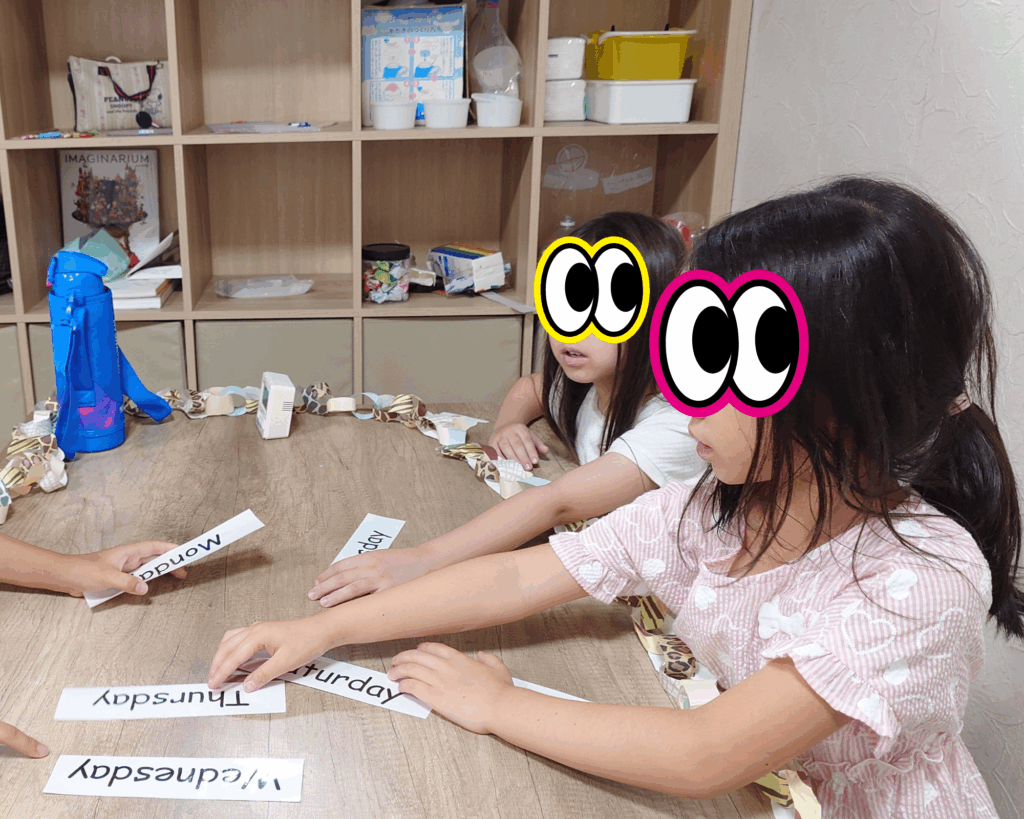 ゲームをしながら順番に文章を作りました。