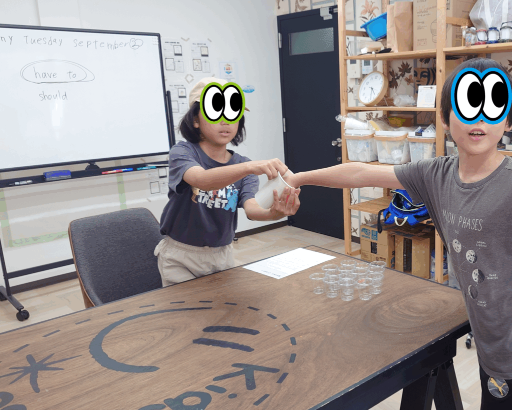 ただ、レッスン中は作り方はもちろん英語で、特に2 glass of milkや、a lotなど、量を表す言葉や、mix、shake、addなど、普段使わないような表現もたくさん出てきたので、子ども達にとってすごく楽しく英語を学ぶレッスンだったと思います。