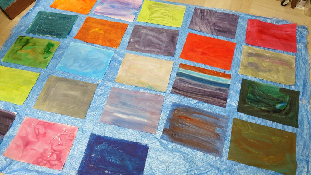 こんな風に色を重ねることで、偶然に出来上がる色や形をきれいだと感じる、おもしろいと感じることができたみたいでうれしかったです。