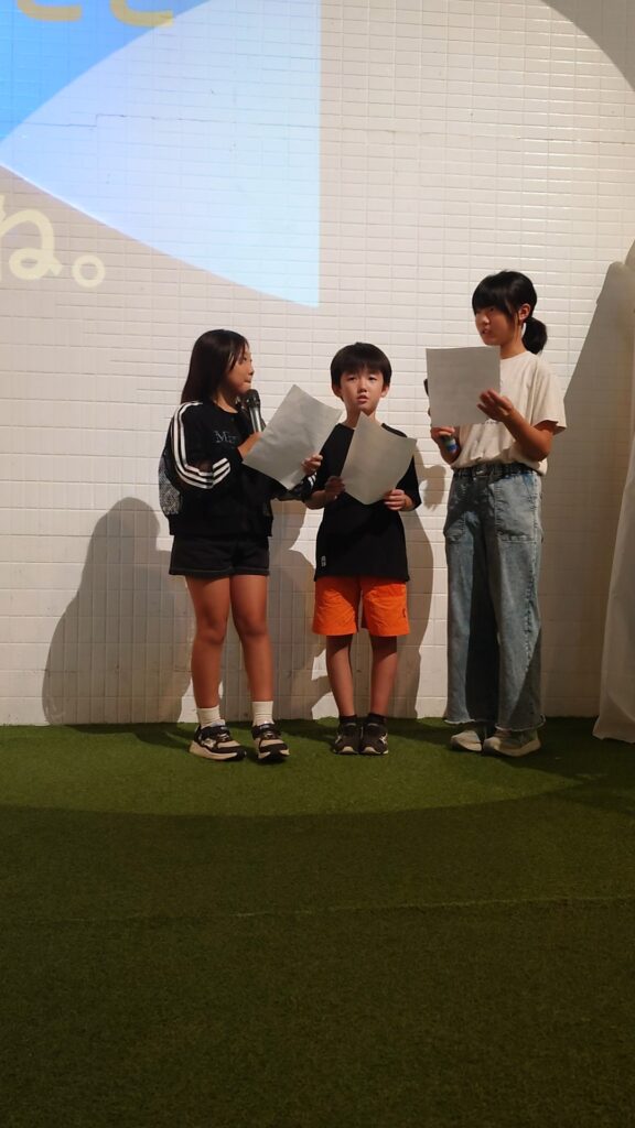人前で発表する時って、頑張ろうと力みすぎたり、恥ずかしくなってモジモジしたりのどっちかなぁ?と思ってたのですが、いつも通りできるこの3人はすごいなぁと思いました。