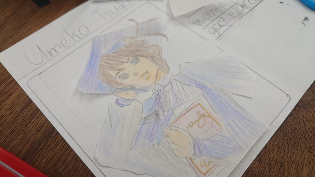 本づくりに取り掛かり、英語を書いてから絵を描くことに。