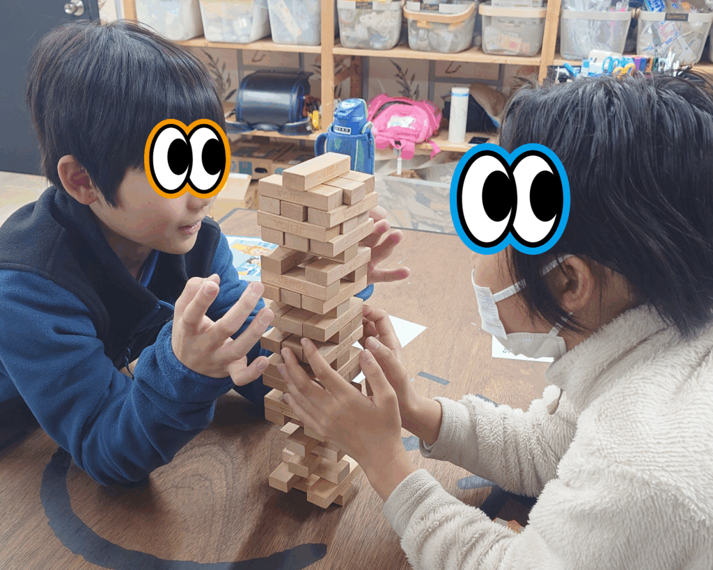文章を交互に作って、二人の大好きなジェンガをしました♪