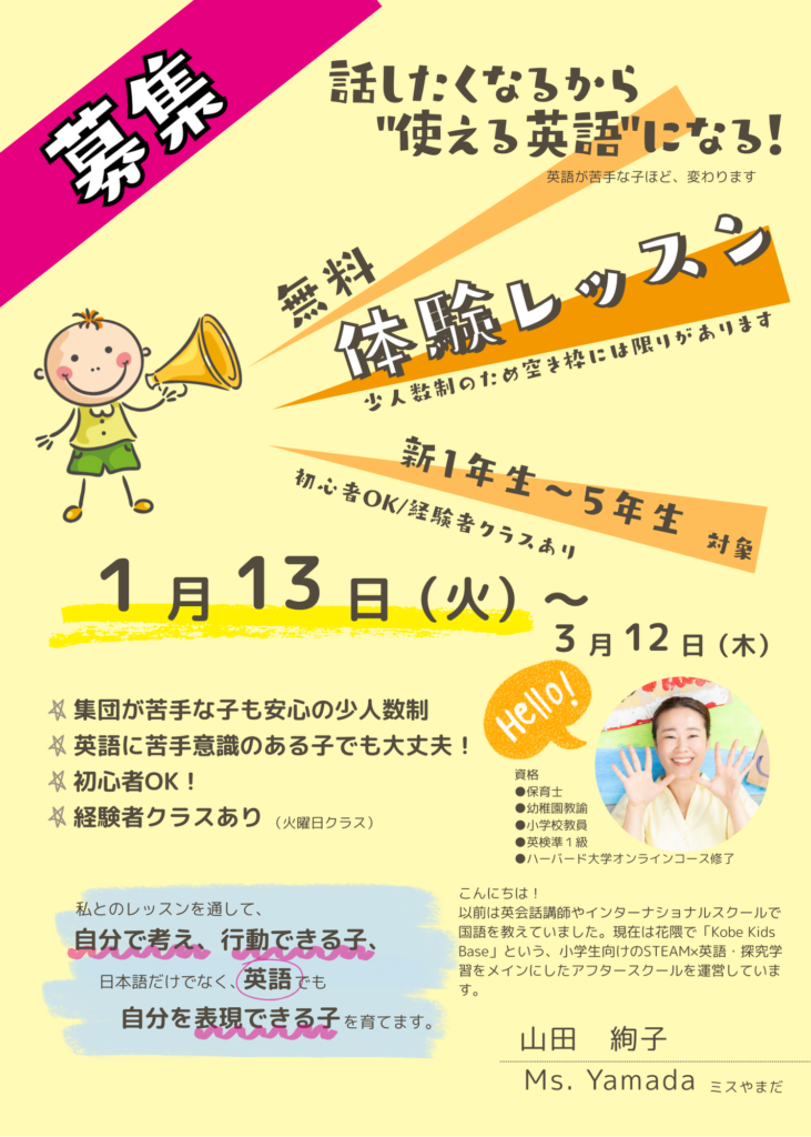 1月13日~3月12日で体験レッスン開講します!