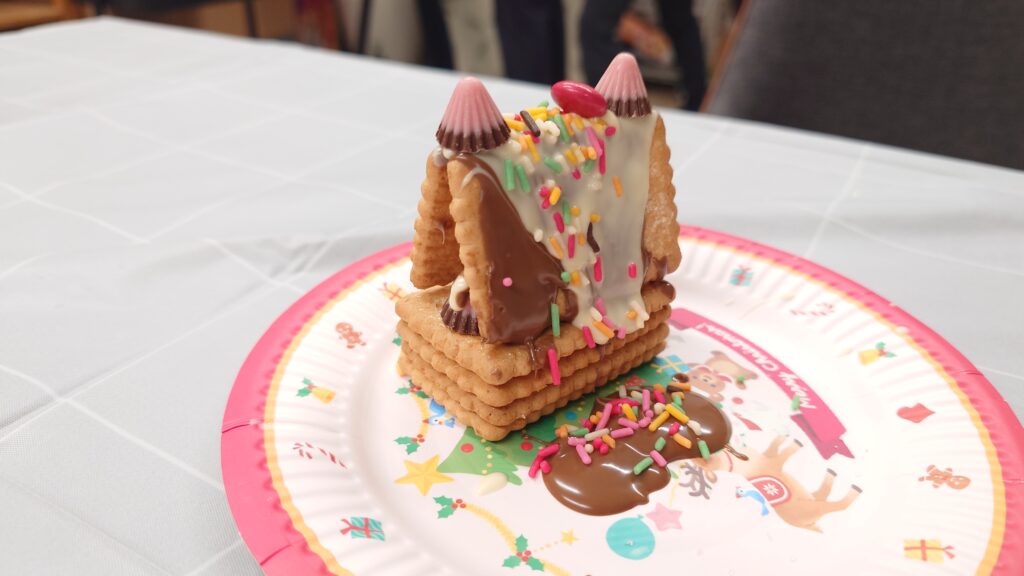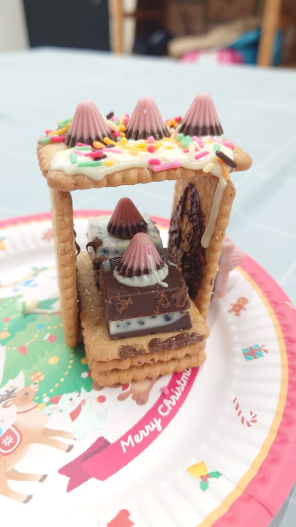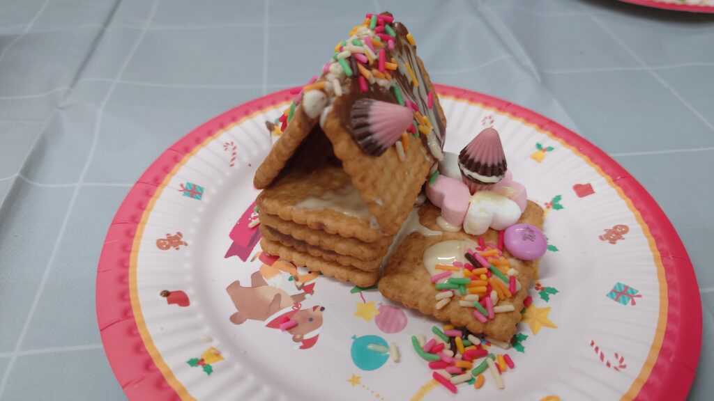 こんな風にお菓子のお家はこの形じゃなきゃと決めつけるのではなく、ある材料で、ある状況で、作れるもので自分の想像したものを作り上げるって大切ですよね。