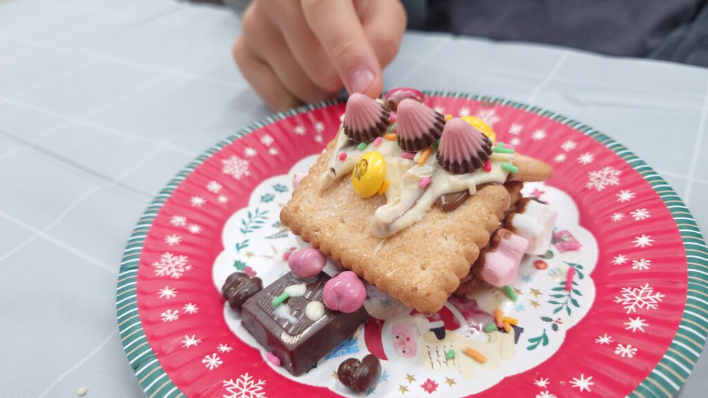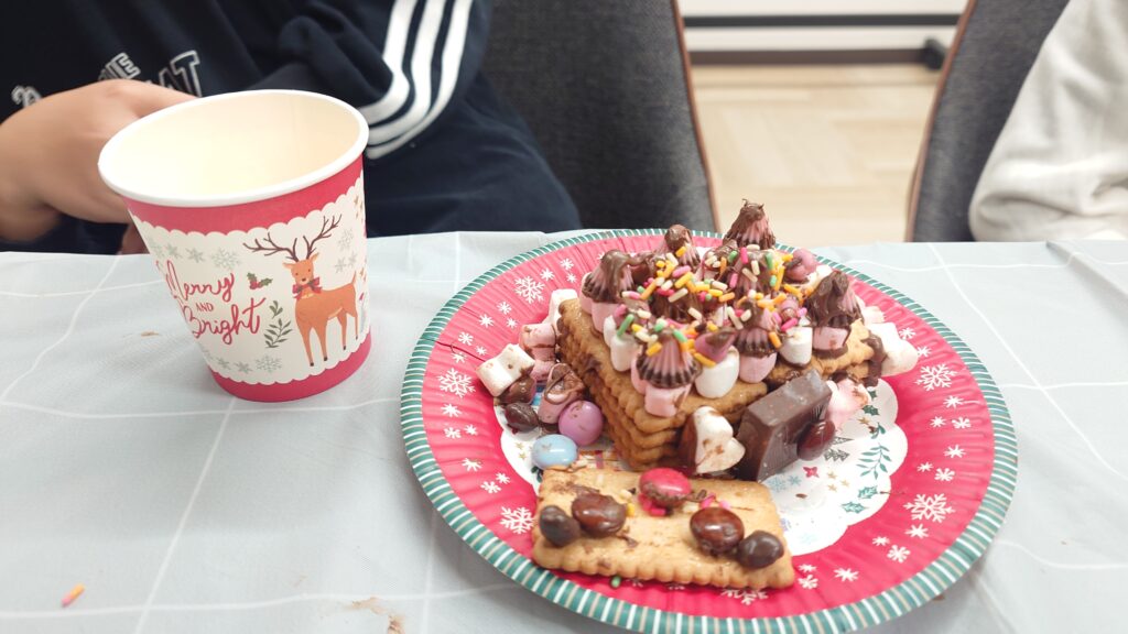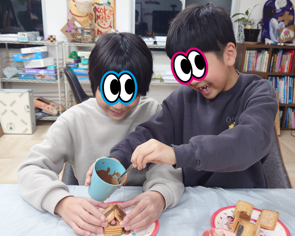 今年最後のレッスンです!25日木曜日はクリスマスということで、毎年子ども達とお楽しみのお菓子のお家づくりをします!子ども達はソワソワ(笑)