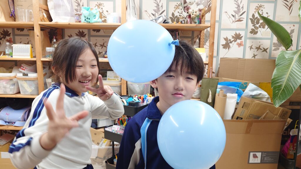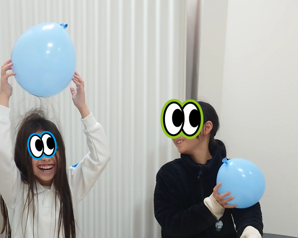 風船を膨らませるだけで楽しそう(笑)