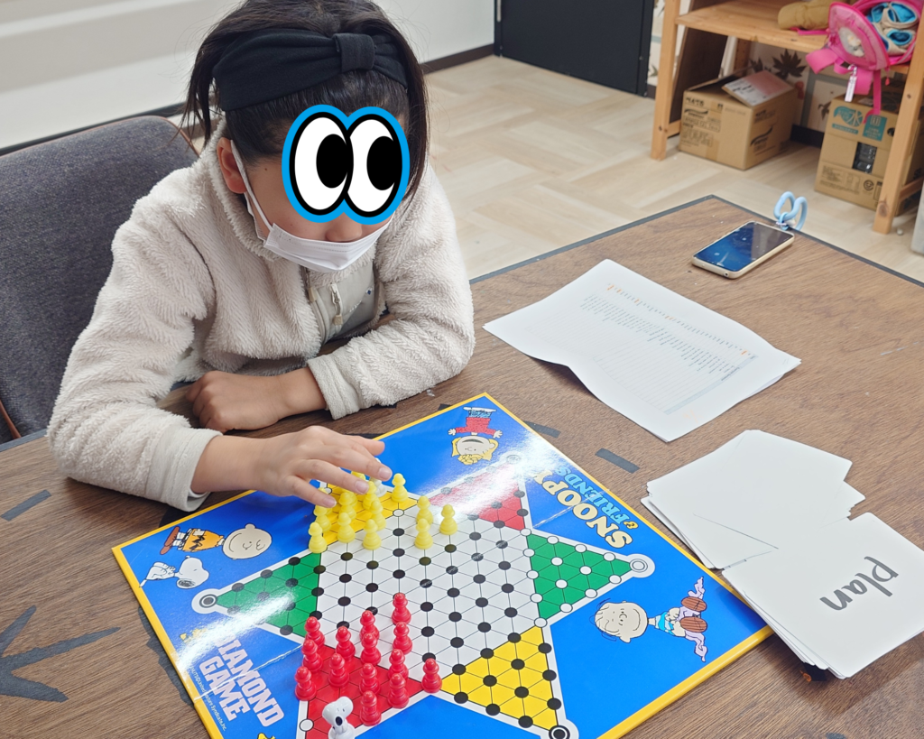 そして前回と同様、英検に出てくる動詞のおさらいをダイアモンドゲームをしながら。